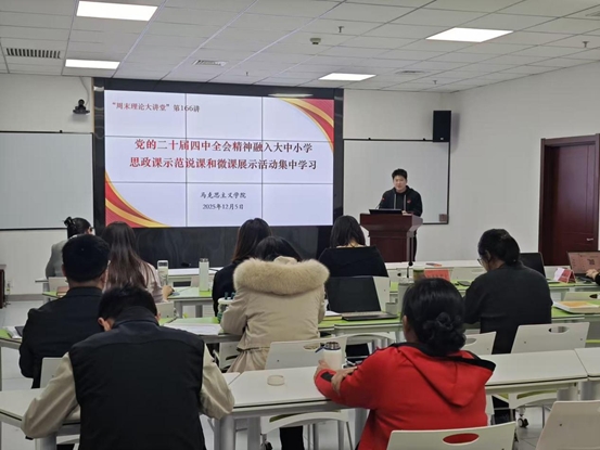 12月5日,马克思主义学院组织全体教师线上集中观摩学习了教育部组织的党的二十届四中全会精神融入大中小学思政课“周末大讲堂”,围绕理论导学与示范说课、微课展示开展专题研讨。在教学示范环节,重点学习了党的...