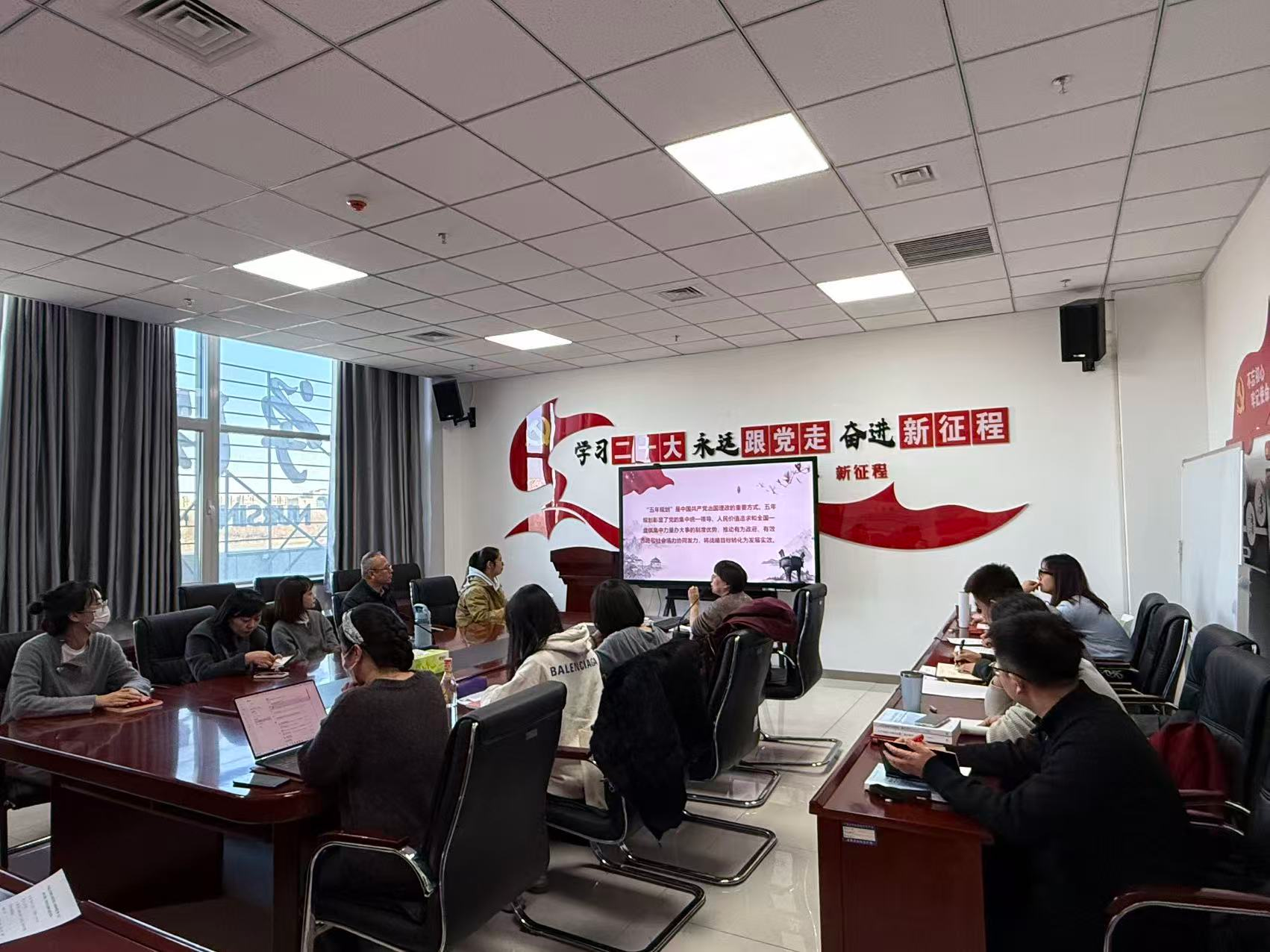 11月27日,外国语学院教工第一党支部联合马克思主义学院教工第四党支部联合开展学习贯彻党的二十届四中全会精神主题党日活动。两个党支部全体党员、公共外语教研室全体教师参加。活动中,与会人员集中学习了党的...