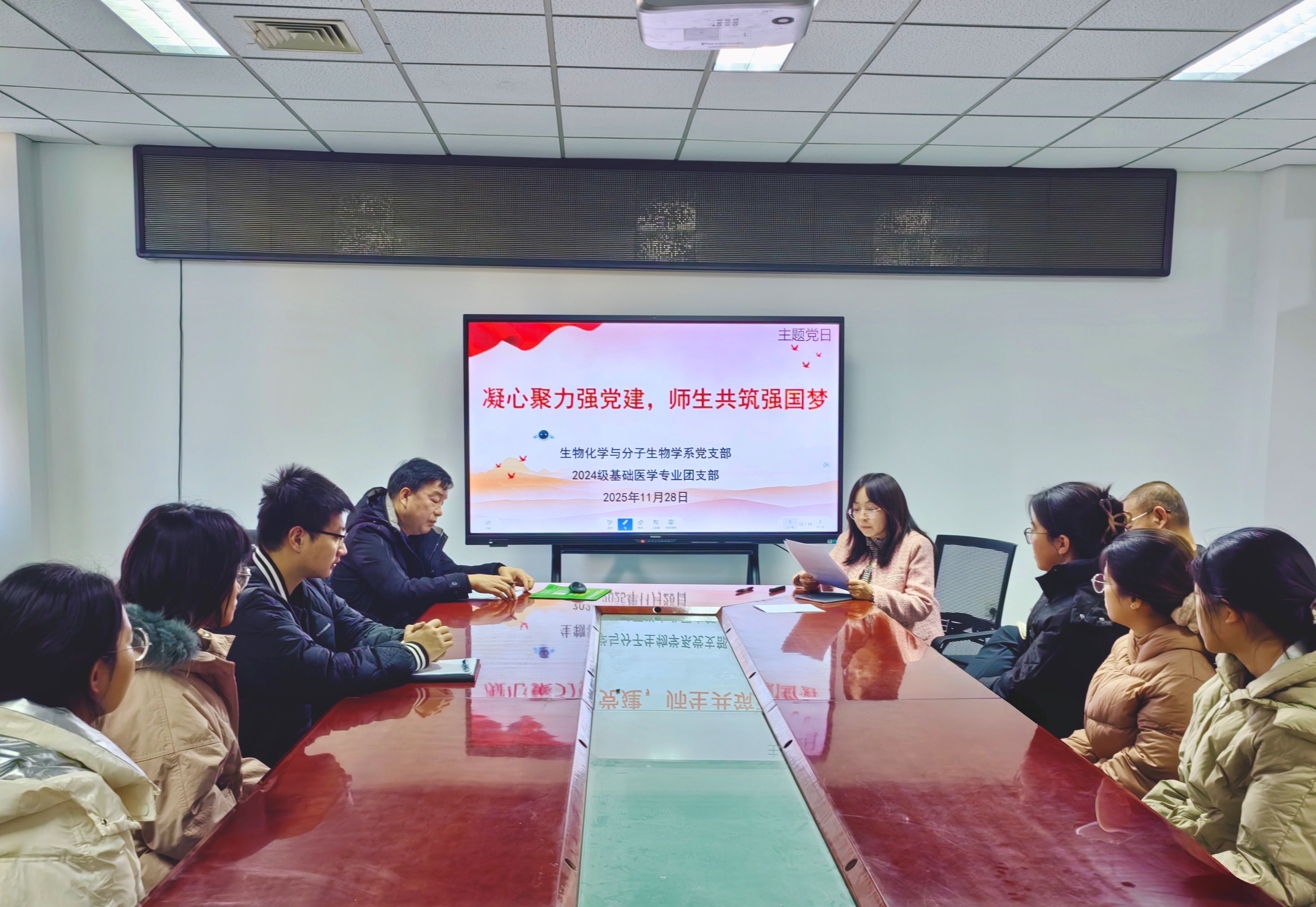 11月27日,基础医学院生理学与神经生物学系党支部、2025级基础医学班团支部在雁湖校区厚生楼党员之家联合开展“党团共建强根基,师生共筑新征程”主题联建活动。学院专职组织员,党支部党员教师和团支部全体学...
