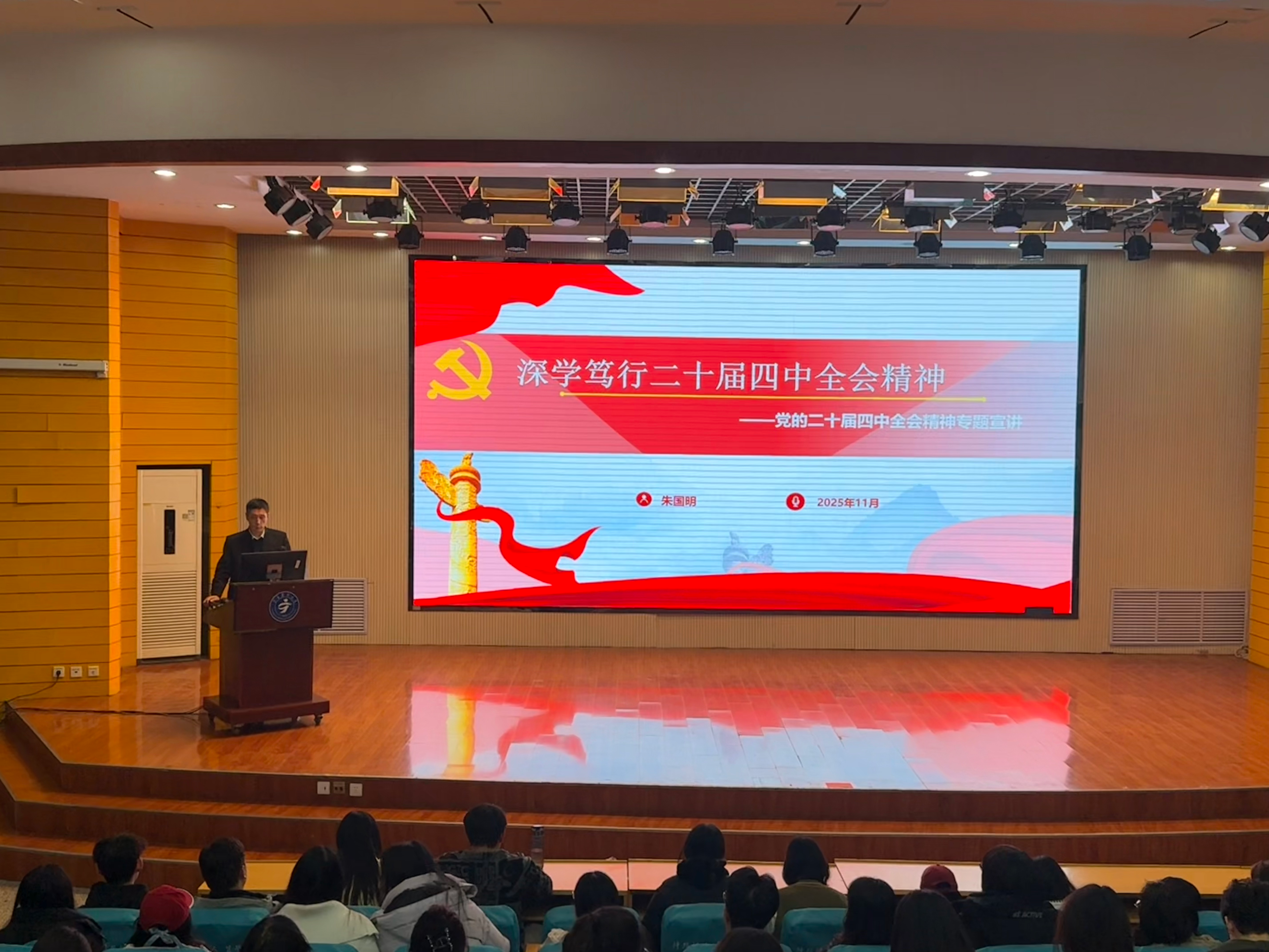 11月27日,人文与管理学院在雁湖校区应谦楼启思学术报告厅开展“党建铸魂·专业强基——党的二十届四中全会精神引领学科发展新征程”主题党日。学院6个学系师生党员参加。活动邀请学校宣讲团成员、马克思主义学院...
