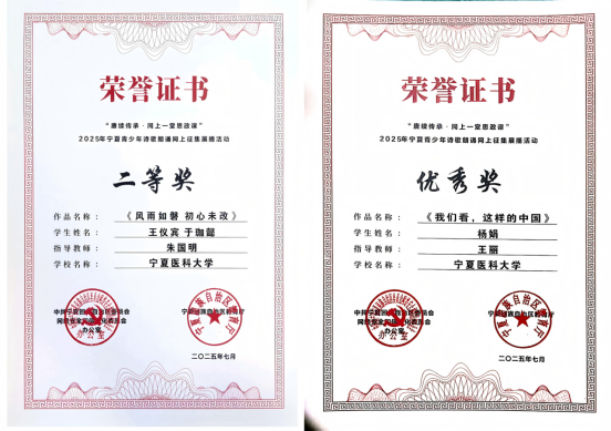 近日,由自治区党委网信办、教育厅联合举办的“赓续传承•同上一堂思政课”2025年宁夏青少年诗歌朗诵网上征集展播活动获奖名单公布。我校荣获“优秀组织单位”,马克思主义学院朱国明教师指导的作品《风雨如磐 初心未改》荣获二等奖、朱国明教师荣获“优秀指导教师奖”,王丽老师指导的作品《我们看,这样的中国》荣获优秀奖。