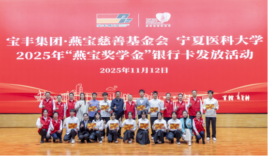 11月12日,由学生工作部(学生处)主办、中医学院承办的2025年“燕宝奖学金”银行卡发放活动在雁湖校区尚行会议中心举行。宁夏燕宝慈善基金会负责人、学生工作部(学生处)负责人、各学院受助学生代表参加活动。