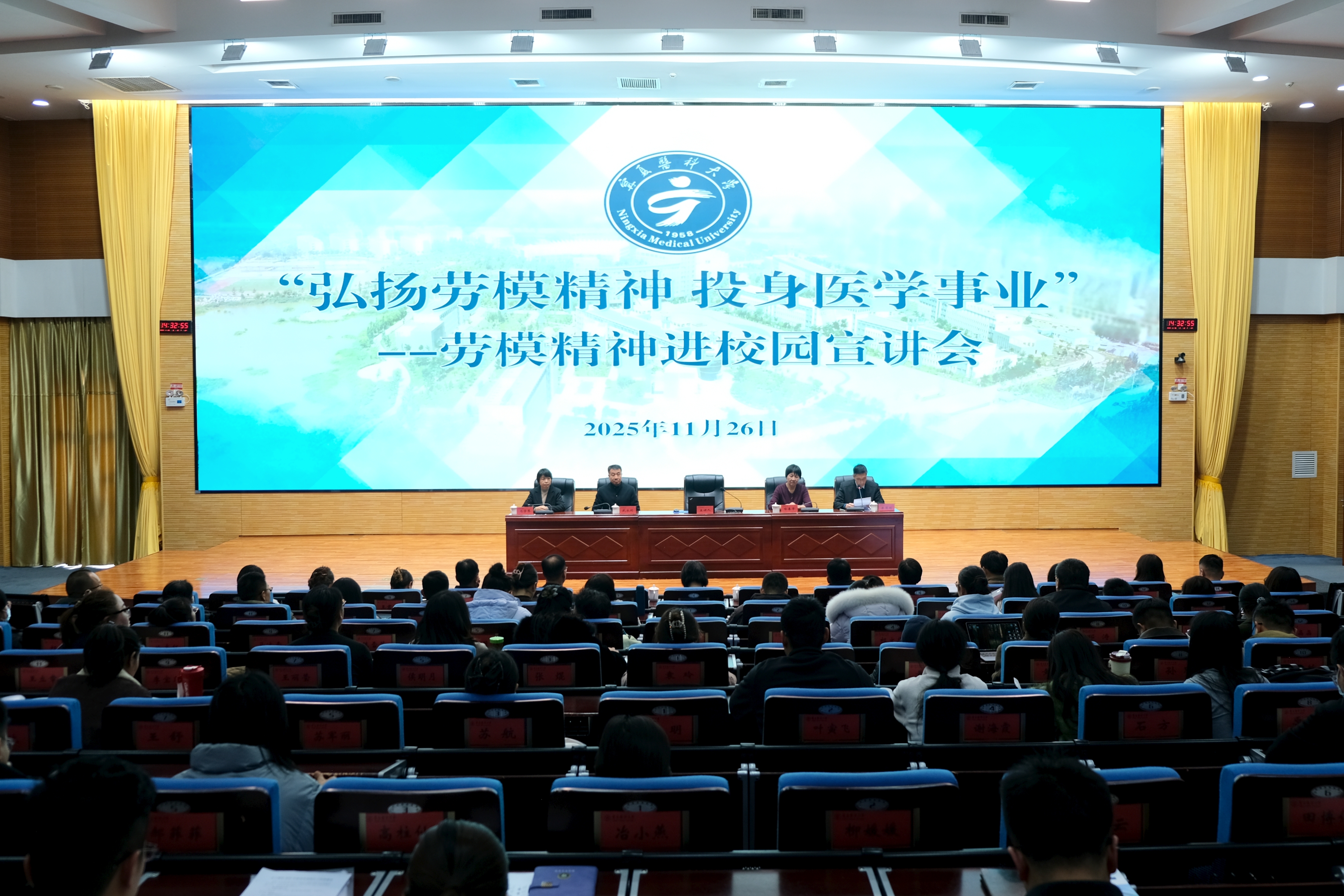11月26日,学校在雁湖校区尚行会议中心举办“弘扬劳模精神 投身医学事业”主题宣讲活动。党委副书记邓彦芳,2025年度新入职教职工、研究生及本专科生代表,各基层分工会负责人及教师代表200余人参加。