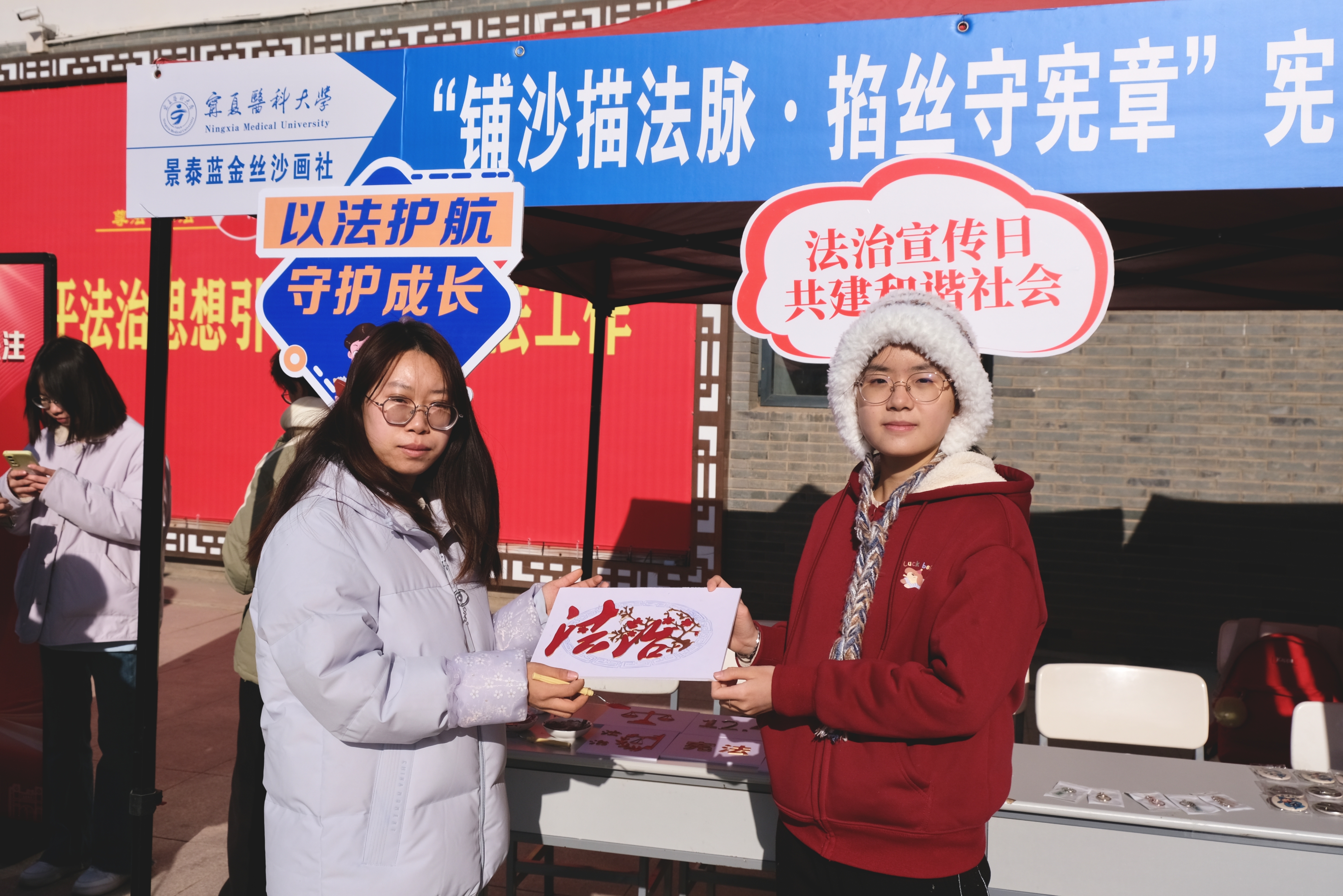 活动现场,大家学习了习近平总书记对全面依法治国工作、在第十个国家宪法日之际作出的重要指示精神。由在校大学生担任的普法宣讲员围绕习近平法治思想核心要义,宪法规定与原则精神,《中华人民共和国民法典》《中华人民共和国爱国主义教育法》《中华人民共和国监察法》重点内容等展开专题宣讲。宣讲员结合鲜活案例与理论解读、校园生活与社会热点,深入浅出地阐释宪法在国家治理中的核心地位、法治宣传教育法的实践要求,帮助师生员工深刻理解宪法精神实质与丰富内涵,让法律条文转化为鲜活的法治认知。现场还同步开展了宪法知识竞赛,“宪法铭心传薪火,非遗花鸟续文脉”宪法宣传日活动,面向师生员工发放了《中华人民共和国宪法》,组织了沙画、手抄报作品展,创新设置宪法诵读、拍照打卡等互动环节,以沉浸式、体验式宣传形式,推动宪法精神入脑入心,让法治理念与非遗文化在校园中深度融合、双向赋能。