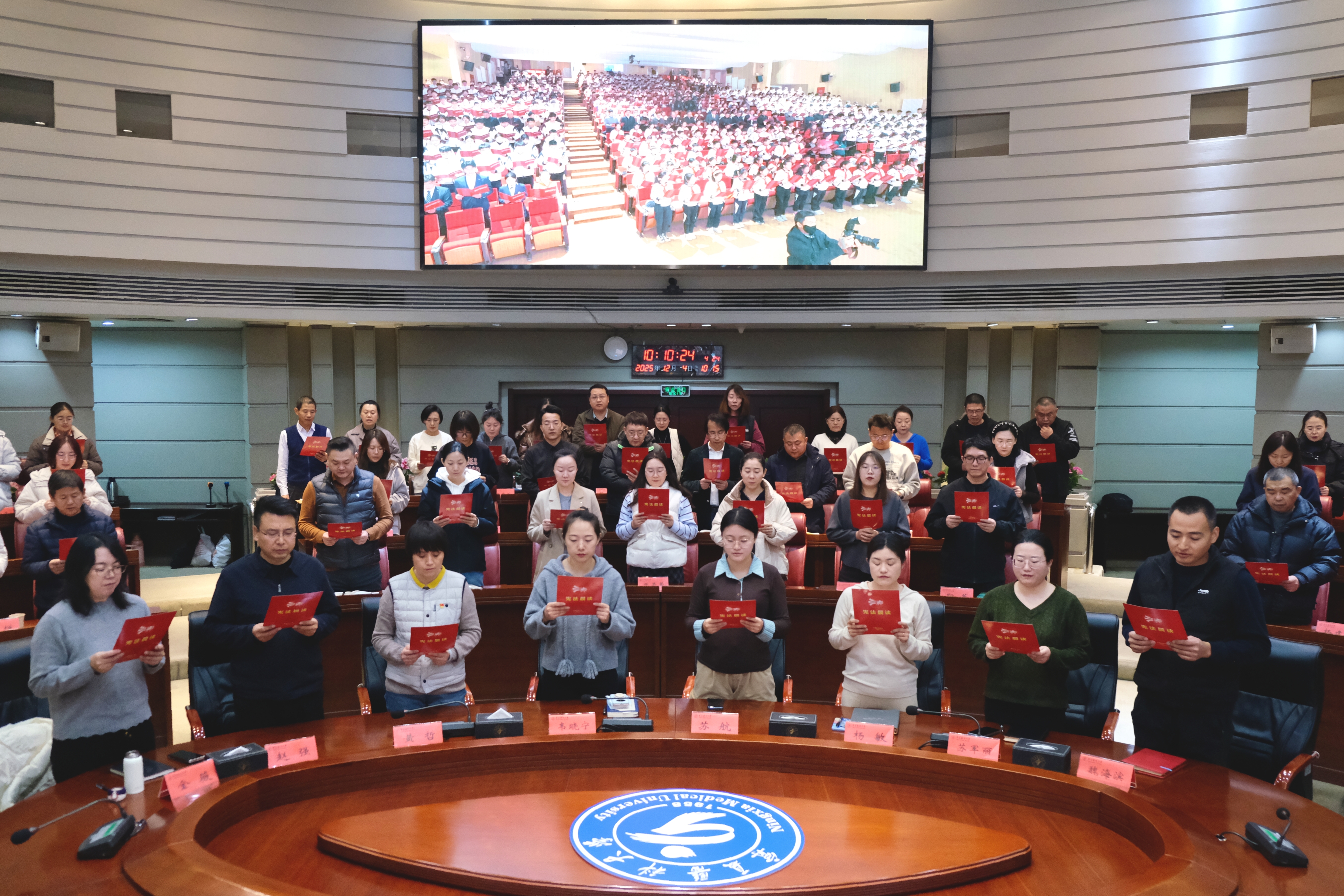 12月4日,在第十二个“国家宪法日”及第七个“宪法宣传周”期间,学校以“学习宣传贯彻习近平法治思想推动宪法深入人心”为主题,在雁湖校区弘毅体育馆开展了2025年第13次党委理论学习中心组(扩大)学习会暨“12・4”国家宪法日集中宣传活动,以学促行、以宣践知,推动宪法精神在校园落地生根。学校党委副书记、校长姜怡邓,党委常委,相关部门(单位)负责人及师生员工代表参加。