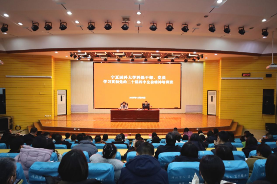 12月25日,学校在雁湖校区启思学术报告厅举办科级干部、党员学习贯彻党的二十届四中全会精神培训班。邀请自治区宣讲团成员,自治区社科院党组副书记、院长马文锋作报告。学校党委副书记邓彦芳主持开班式,党委常委、组织部部长魏晋怡、王新刚,全体科级干部、师生党员代表参加培训。