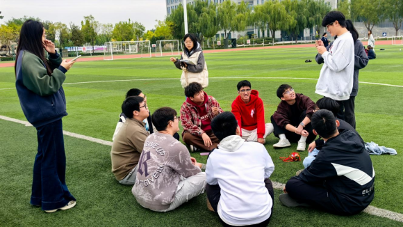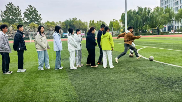 在“足够同心,民族答当乐”环节,旋转后的踉跄与射门命中的欢呼交替上演,思索“中华民族共同体核心内涵”时的专注,更让运动乐趣多了份思想重量。在“民族聚力跑,智慧大比拼”环节,“一二、一二”的口号声铿锵有力,绑着同根绳索的同学们相互搀扶、步伐整齐,每一步都凝聚着对彼此的信任,那些缠绕在脚踝的绳索,成为了象征民族团结的“纽带”。