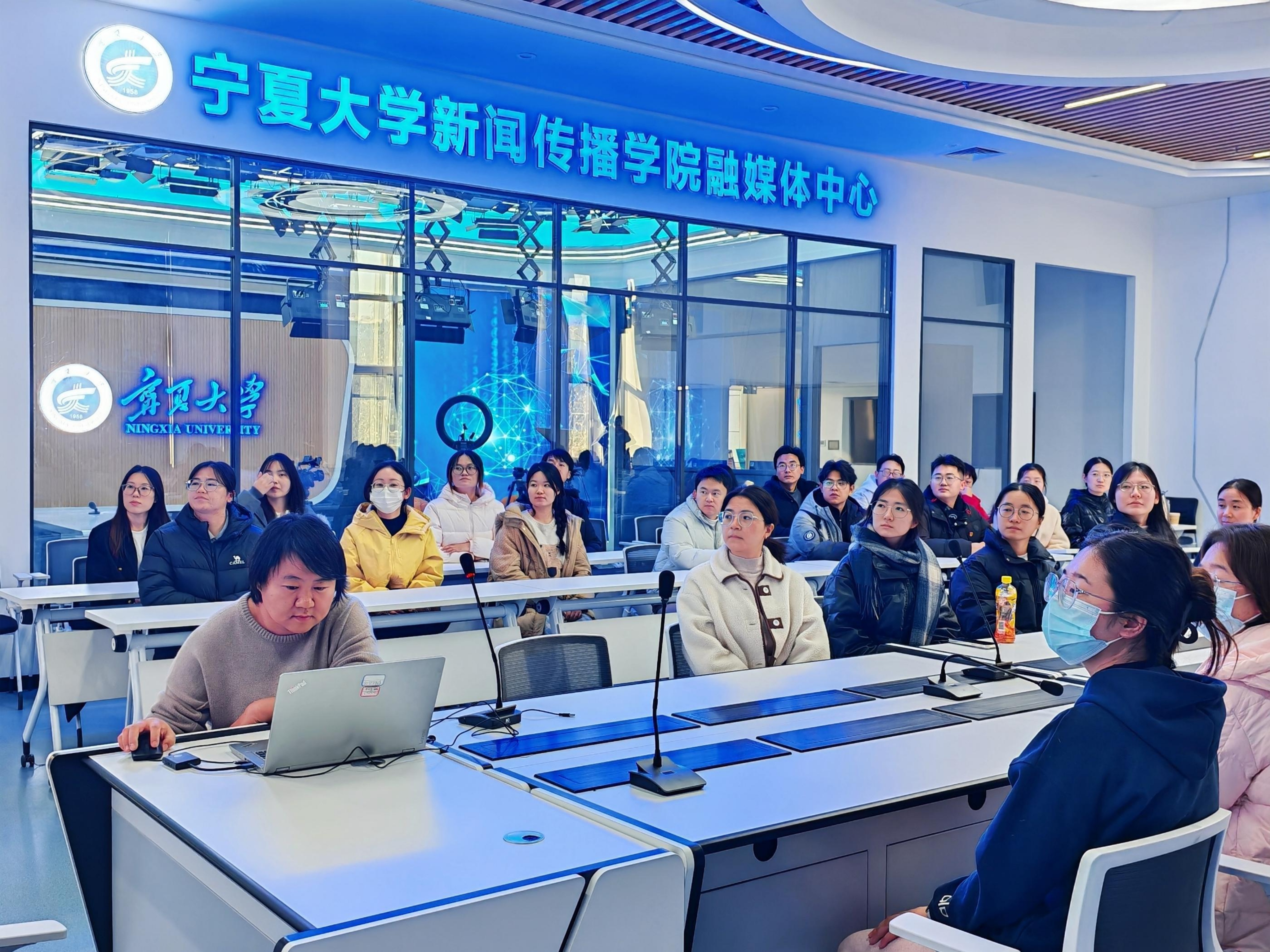 在宁夏大学哲学与艺术学部负责人的带领下,大家实地观摩了新闻传播学院演播大厅、3D制作室、舆情监测中心等九大特色教学与实践场所。学习观摩后,党支部书记张茜结合学习所见所感,以铸牢中华民族共同体意识为主题讲授了一堂微党课。