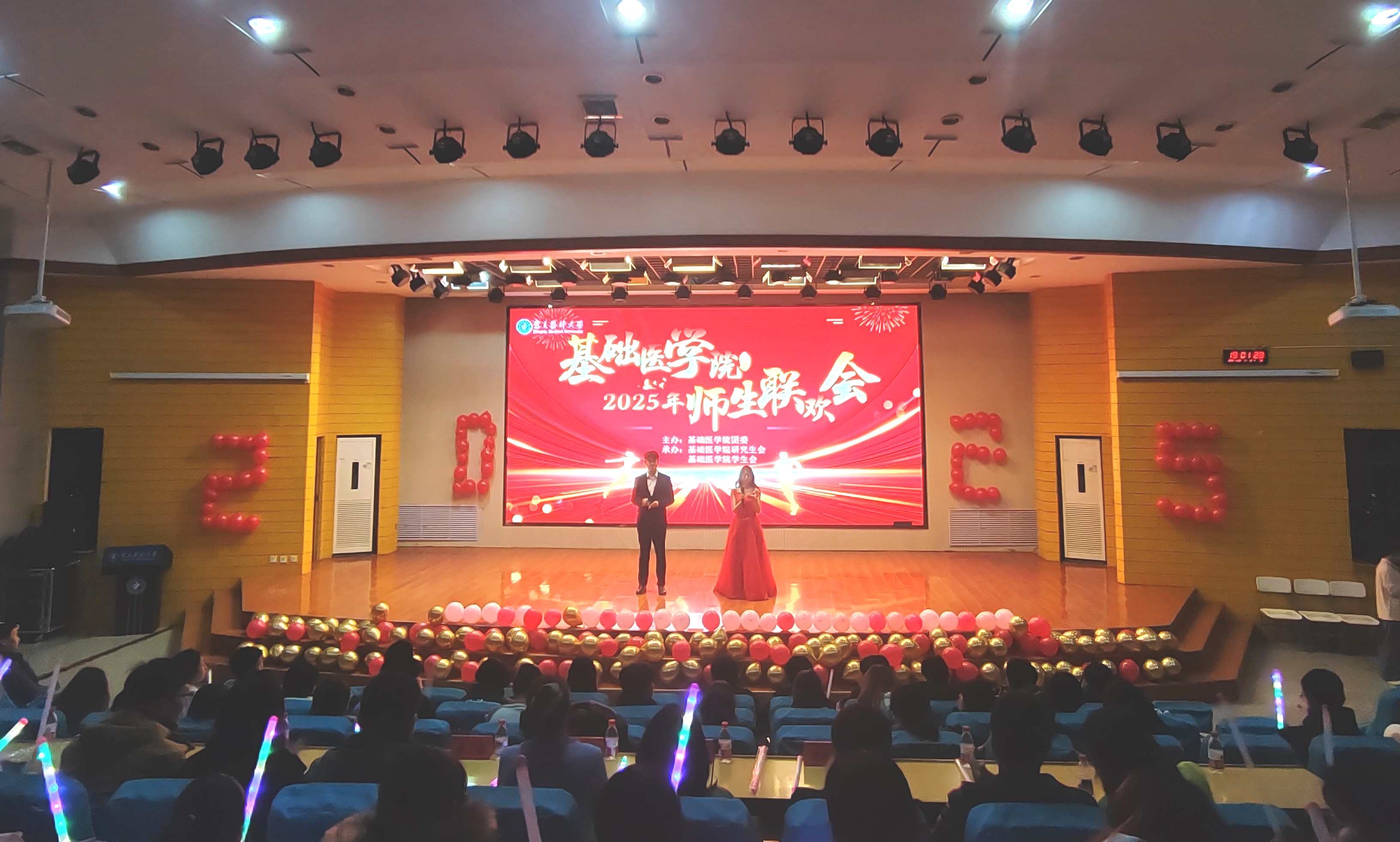 11月26日,基础医学院在雁湖校区应谦楼启思学术报告厅举办2025年“医路同行·青春共燃”师生联欢会。学院班子成员、教师代表与本硕博全体学生欢聚一堂,以歌舞曲艺共绘青春华章,以师生情谊共谱育人新篇。