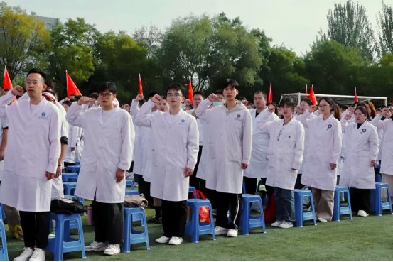 典礼中,基础医学院教师马占兵博士结合自身学习体会就数字技术对教学的深刻变革讲到,从显微镜观察细胞到虚拟仿真“走进”细胞、从板书罗列到互动实时教学,带给学生们更多生动学习的空间,鼓励大家以技术为翼、人文为根、信念为舵,在宁医锤炼成长,书写医者传奇。2025级中西医临床医学创新人才培养班许家豪同学带着对医学事业的向往,跨越千里奔赴澳门开彩结果记录查询,“作为一名崭新的“宁医人”,我感受到了时代的责任和青春的召唤”。2025级麻醉学专业博士研究生赵娜同学以麻醉领域名言与大家共勉:“好的麻醉,是让患者忘记疼痛;好的科研,是让世界记住价值。”她希望追逐学术的高度,扛起“健康防线守护者”的使命,努力成长为破解临床难题、推动医学进步的开拓者。高年级学生代表为新生佩戴了校徽。教务处处长徐涛教授带领全体新生领誓《医学生誓言》。全体师生共同起身奏唱校歌《雁湖情》。