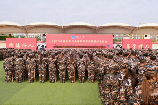 硕果金秋,学海启航。9月18日上午,学校2025级新生开学典礼暨军事技能训练汇报会在雁湖校区体育场举行。学校党委书记张治荣,党委副书记、校长姜怡邓,自治区教育厅体卫艺处二级调研员马希林,承训部队负责人,党委常委、副校级领导邓彦芳、张立杰、牛建国、杨怡、韩怀钦、魏晋怡、王新刚、邱鹏飞出席,党政群部门负责人、教学科研教辅单位负责人、2025级全体本专科生和研究生参加。学校党委副书记韩蕃璠主持开学典礼和军事技能训练汇报会。