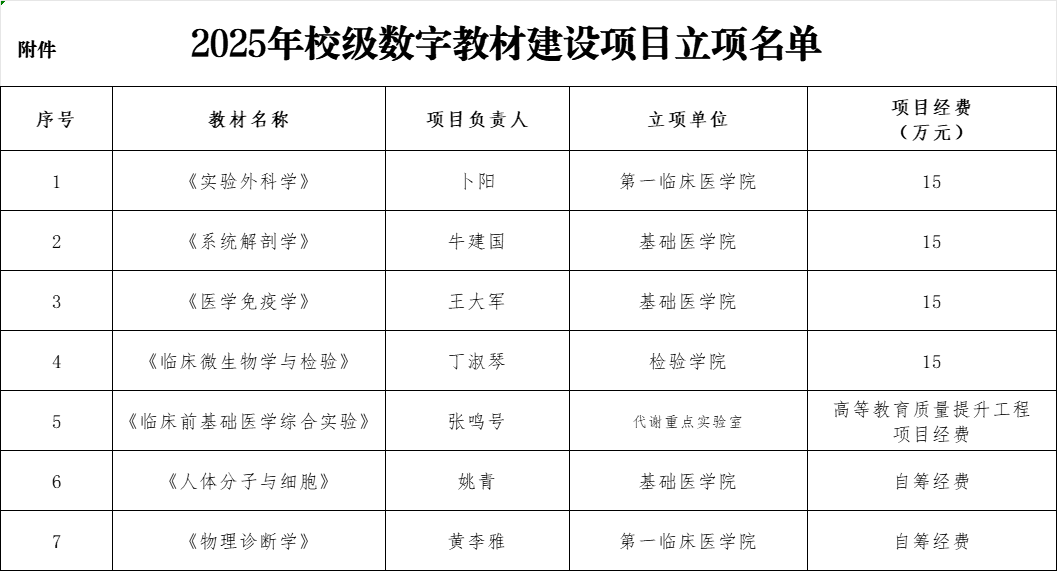 根据《澳门开彩结果记录查询优质数字教材建设实施方案的通知》(宁医校发〔2025〕53号)的要求,经教师个人申报、学院推荐、教务处审查、专家评审等程序,现将《实验外科学》等7个项目拟立项为数字教材建设项目,具体名单如下。