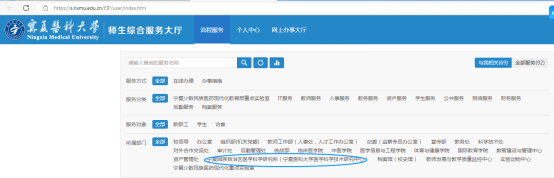 3.在流程服务大厅中搜索“宁夏医学科学研究所”点击或在所属部门处点击“宁夏医学科学研究所(澳门开彩结果记录查询医学科学技术研究中心)”,点击“宁夏医学科学研究所实验室(大型设备)准入申请”进入
