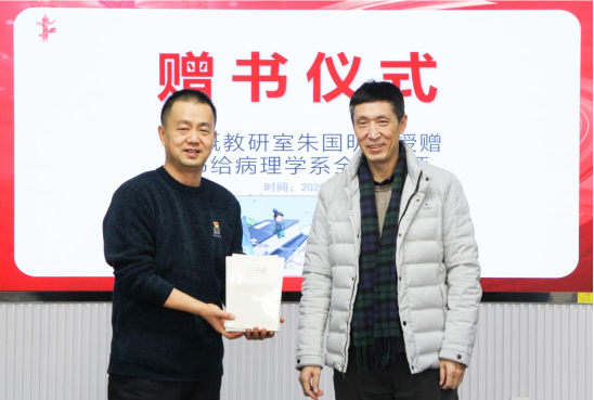 活动中,病理学系党支部书记领学了党的二十届四中全会关于教育工作的相关内容及精神。“毛泽东思想概论”课程组(教研室)党支部书记紧扣全会精神,作了题为《充分发挥医界榜样在医学生思想政治教育中的作用》的专题报告。教学研讨环节,病理学系两位教师分别围绕泌尿、生殖、内分泌系统疾病及传染病等章节进行了说课展示。与会教师就“病理学知识点与思政元素的融合路径”展开热烈交流,一致认为应深入挖掘病理学教学中蕴含的科学精神、人文关怀与职业道德元素,将党的创新理论有机融入专业教学,实现知识传授、能力培养与价值塑造的深度融合。“毛泽东思想概论”课程组(教研室)向病理学系赠送了《医样·学样:医界榜样的育人价值研究》书籍。
