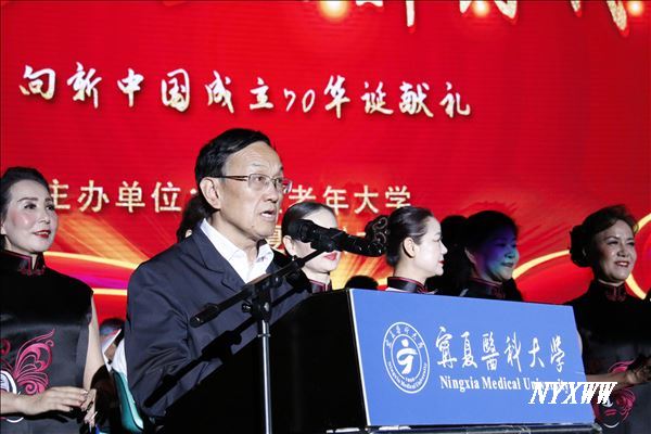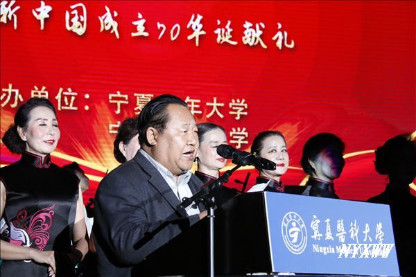 学校校长孙涛代表学校全体师生向始终关注着青年、牵挂着宁医学子成长成才的老前辈们表示衷心的感谢!他说到,在纪念五四运动100周年,第70个五四青年节即将到来之际,老前辈们不辞辛劳,为广大学子精心准备了文艺节目,唱响红色旋律,激发爱国情怀,充分展现了老同志们关注时代、关心青年的赤诚之心,更是一堂饱含家国情怀的爱国主义教育课。