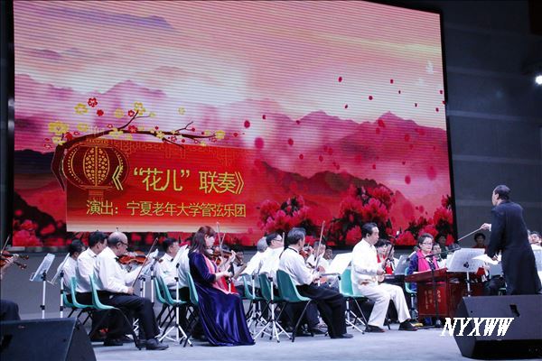 随后,大合唱《映山红》《保卫黄河》拉开了文艺演出的帷幕。嘹亮得歌声,高昂得气势,生动反映了老年人的精神风貌和革命情怀。诗朗诵《美丽中国》表达对祖国崇高的热爱之情,独唱《故乡有话告诉你》《七月的草原》赢得阵阵掌声。演出中,宁夏老年大学管弦乐团表演的京剧串烧《苏三起解》,充分展现了老年人弘扬传统文化,传承民族瑰宝的风采,服饰表演《花翎旗装》向青年人传递着老年人热爱生活、向上向美的情怀。伴随着全场高唱《我和我的祖国》,文艺演出圆满落幕。
